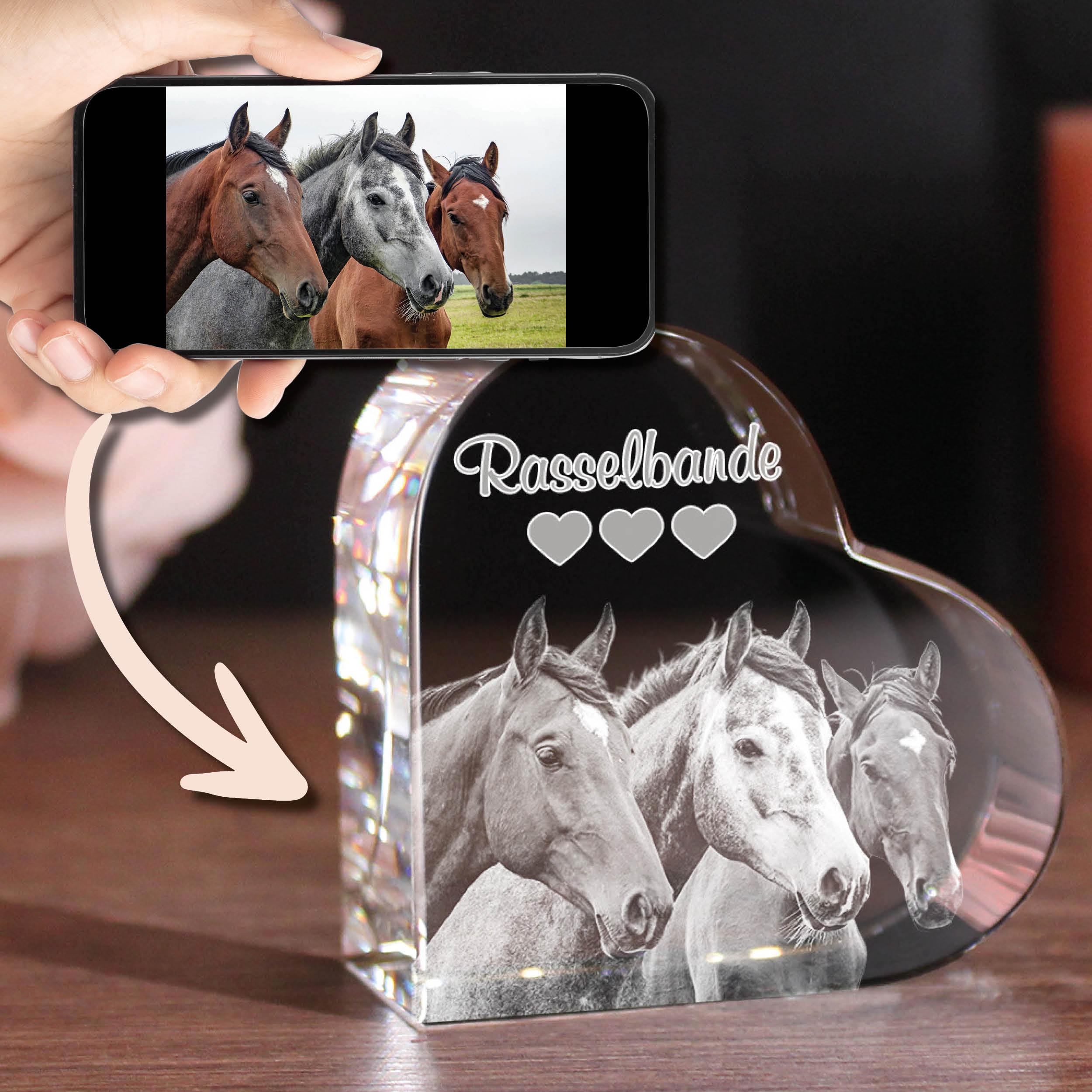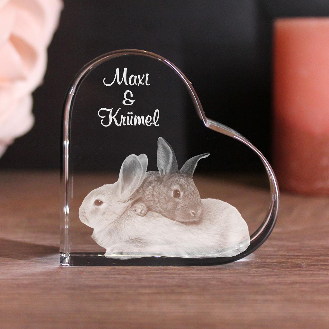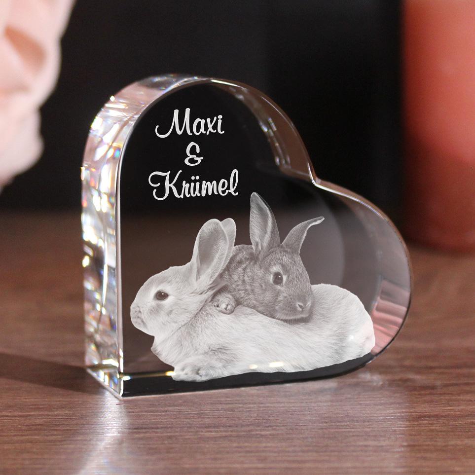 Mit diesem schönen Glasfoto kannst du einen ganz besonderen Moment mit deinem Haustier für die Ewigkeit festhalten. Wir gestalten für dich dein persönliches Dekoobjekt ganz nach deinen Wünschen. Du kannst dir aussuchen, ob wir dein Foto in 2D oder 3D gravieren sollen. Ebenfalls hast du die Wahl ob wir ein Foto mit nur einem Tier, mehreren Tieren oder ein Bild von dir gemeinsam mit deinem Tier nutzen. Dein Lieblingsfoto können wir mit einem Wunschtext ergänzen. Der Glasherz mit Wunschfoto eignet sich auch perfekt als Geschenk zum Geburtstag, Weihnachten oder als kleine Aufmerksamkeit zwischendurch.